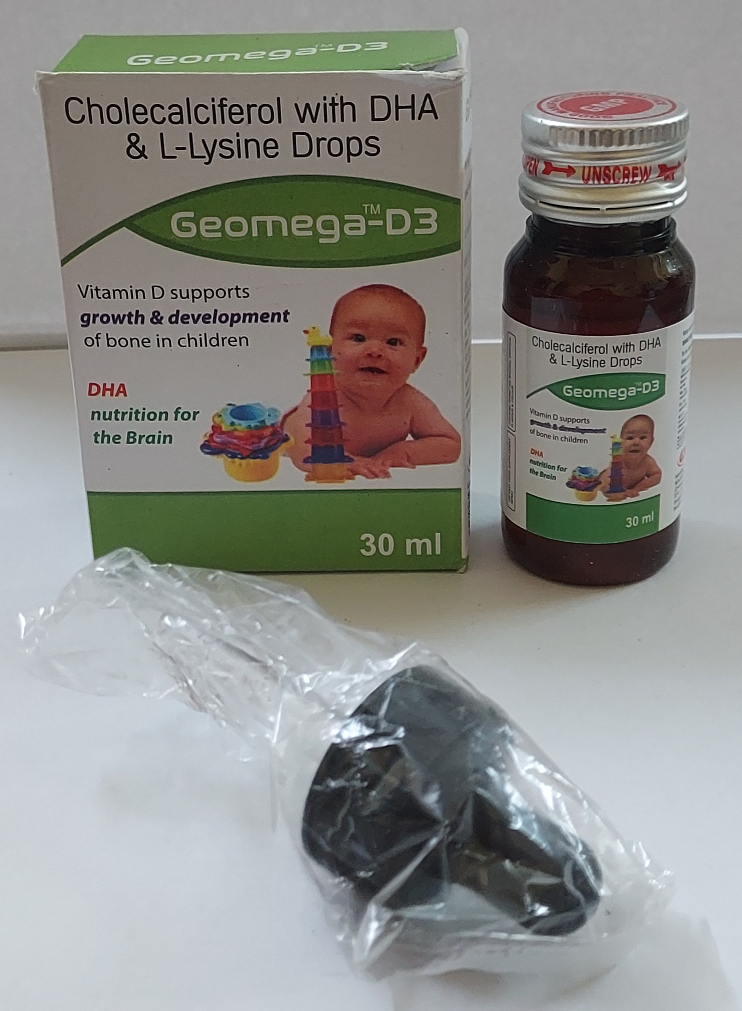 Description : Geomega-D3 Oral Drops is a vitamin D3 supplement which is primairly used to manage and prevent vitamin D3 deficiency. Vitamin D3 is essential for the growth, and formation, and maintenance of healthy bones. Lack of this essential vitamin may cause several bone-related disorders such as osteoporosis, hypoparathyroidism, and rickets. Vitamin D3 is also required for numerous bodily processes, like calcium absorption. It is needed to keep the bones strong and prevents any conditions associated with weak and brittle bones.