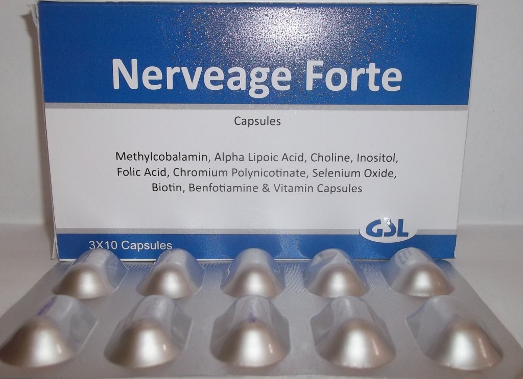 Composition : METHYLCOBALMYNE1500MCG+ALPHALIPOICIC ACID200MG+CHOLINE50MG+INOSITOL100MG+FOLIC ACID1.5MG+CHROMIUM POLYNICOTINATE200MCG+SELENIUM OXIDE65MCG+BIOTIN100MCG+BENFOTIAMINE150MCG+VITAMIN B6-3MG